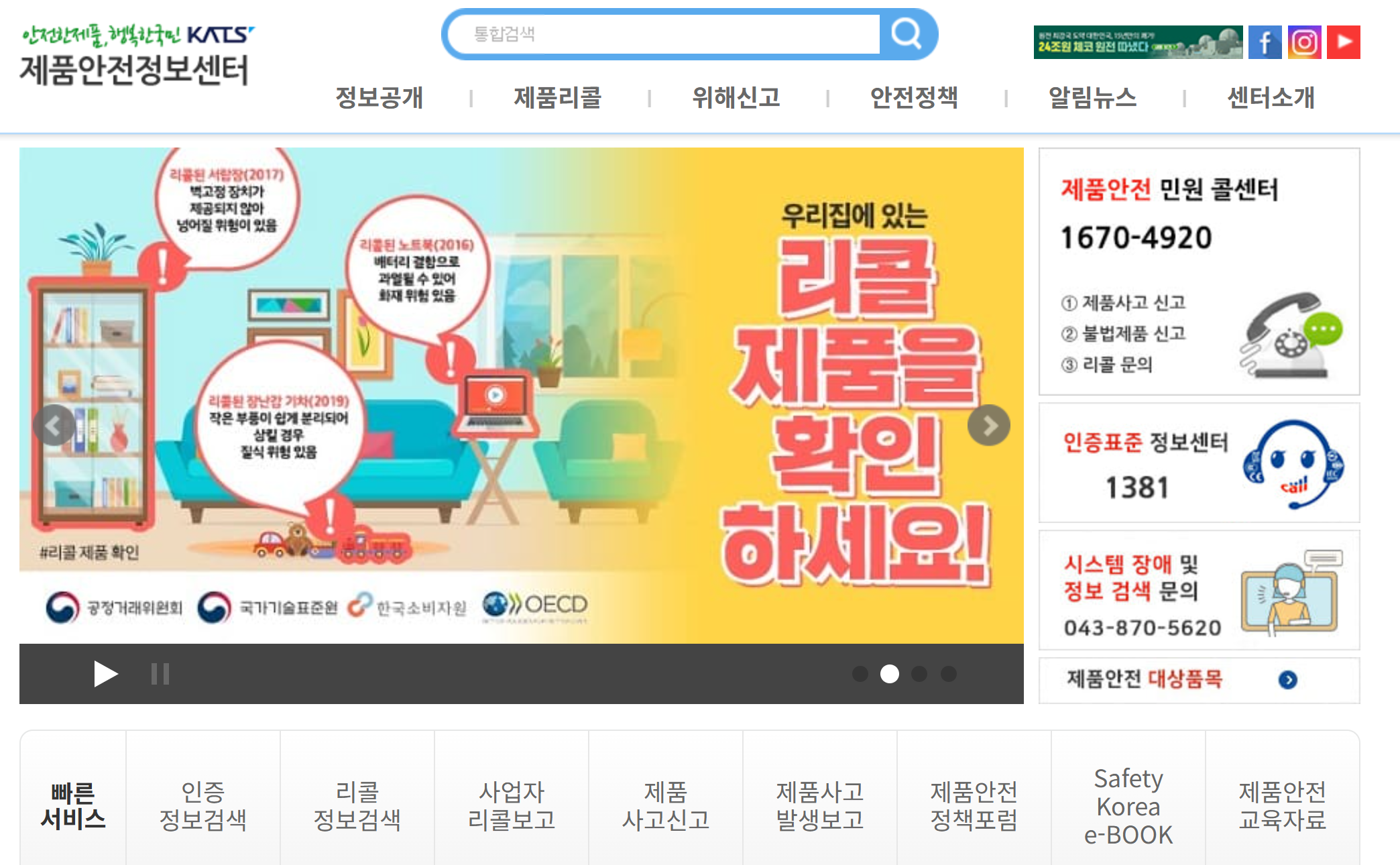 리콜 제품 조회 방법. 제품안전정보센터와 소비자24로 안전 확인하기