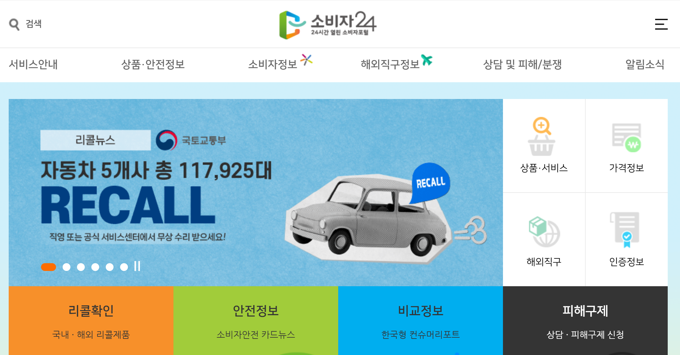 공정거래위원회에서 운영하는 소비자24 포털은 정부 부처별 리콜 정보를 종합 제공하는 사이트입니다.